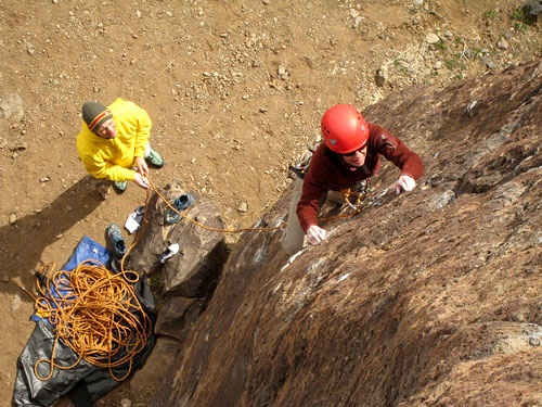 at the base of the Overlook, with Guido Bender belaying (Jason Halladay