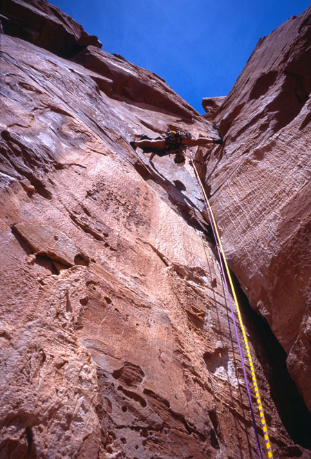 Nearing the top of pitch 4 (the hard way, up the off-width.) |