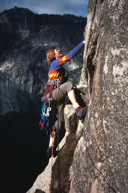 Contemplating the lead of pitch 4 - Cloud's Rest in background. |