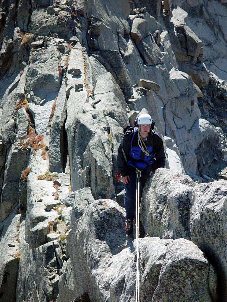 Amidst the gendarmes on a fearsomely exposed traverse. |