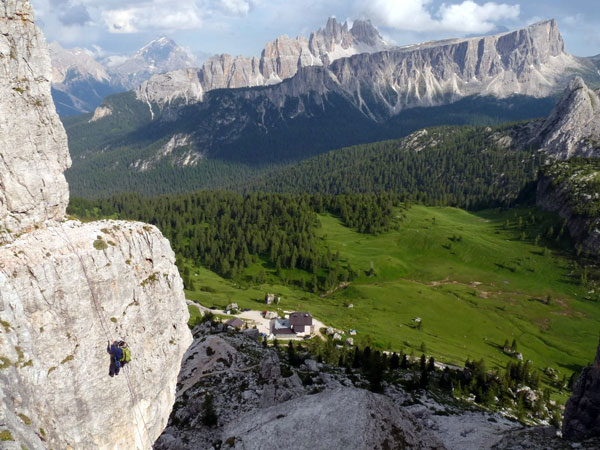 rappels Torre Barancio with the Croda Da Lago mountains in
